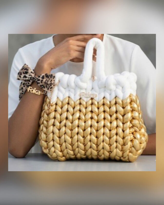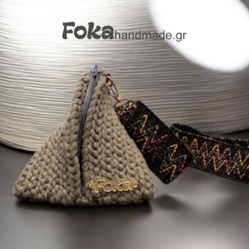 Χειροποίητη πλεκτή τσάντα ώμου Foka με δερμάτινο frame και υμάντα