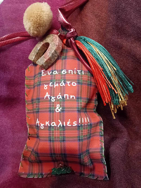 Ετικέτα: Eνα γουράκι 2026 σπιτάκι σε καμβά εκτυπωμένο σε γιορτινά χρώματα με κρεμαστό πέταλο και πολύχρωμα φουντάκια!!