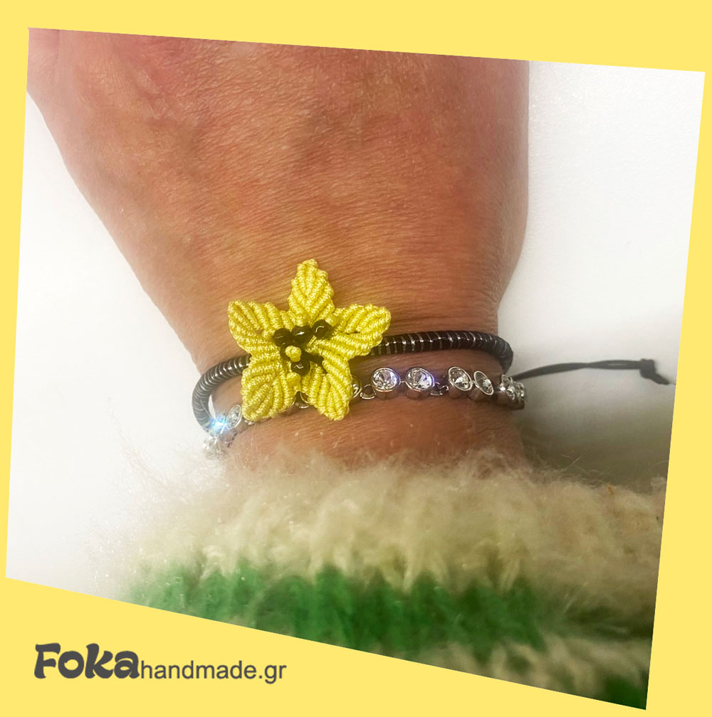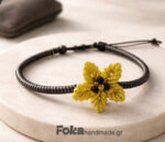 Βραχιολάκι με μεταξωτό κορδόνι που εχει διακοσμηθεί με χειροποίητο μακραμέ λουλούδι !