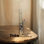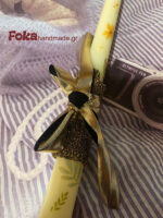 Μία κρεμ λαμπάδα με χρυσά διακοσμητικά και λουλούδια ζωγραφιστά!