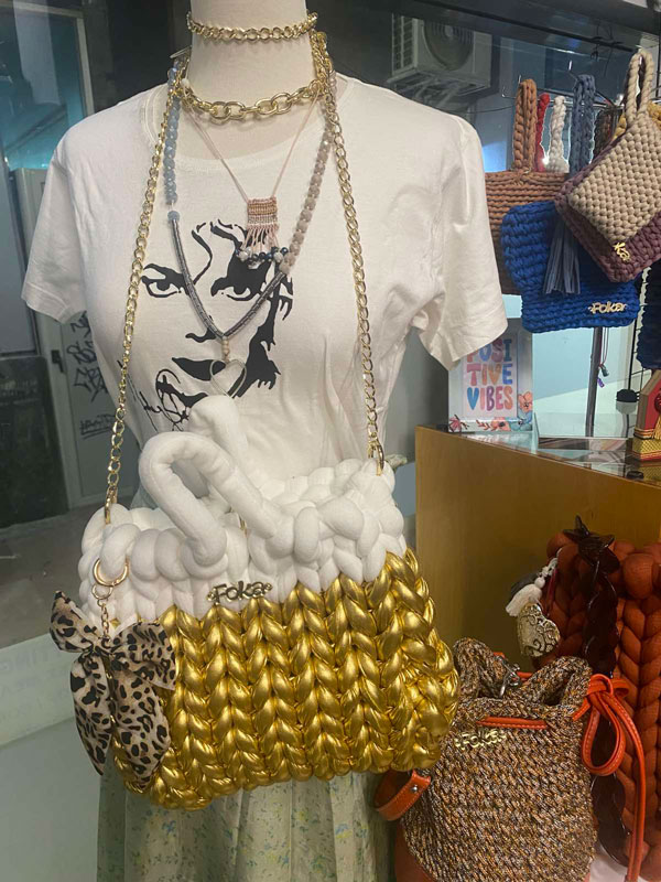 Μια τσάντα χειροποίητη , νήματα 2 χρώματα , χρυσό και λευκό που ξεχωρίζει αλλά σε κάνει να την θες όλη την μέρα μαζί σου!