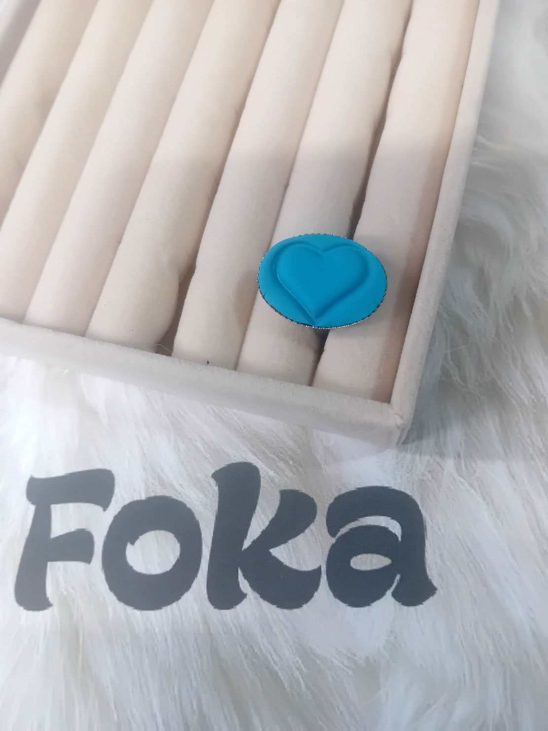 Επάργυρο δαχτυλίδι με αυξομείωση , χειροποίητο με πολυμερικό πηλό, ανάγλυφη καρδούλα στο χρώμα τυρκουάζ!