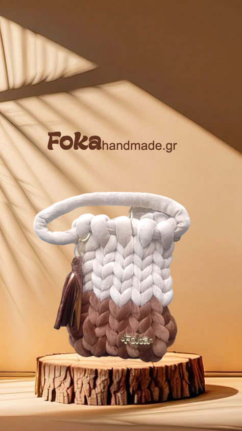 Μια τσάντα βελούδινη, χειροποίτη πλέξη με τα χέρια. Συνδυασμός 2 χρωμάτων καφέ και μπεζ, με κράτημα ώμου ή χέρι!