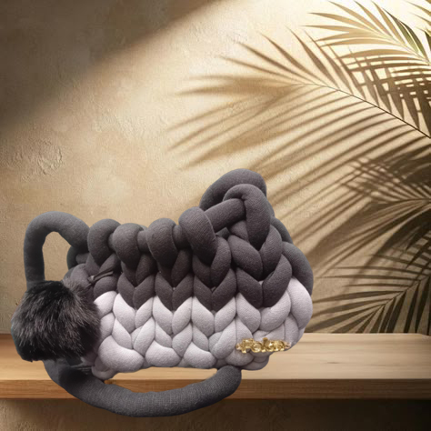Foka τσάντα ώμου, πλεγμένη με τα χέρια,συνδυασμός 2 χρωμάτων μαύρο και γκρι.