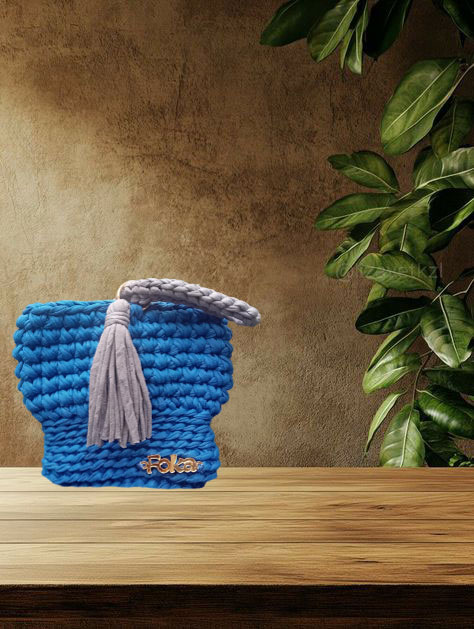 Πλεκτό τσαντάκι χειρός μπλε Royal/σιέλ