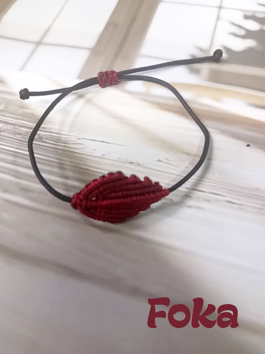 MACRAME φύλλο , μπορντώ-κόκκινο, 100% χειροποίητο βραχιόλι!